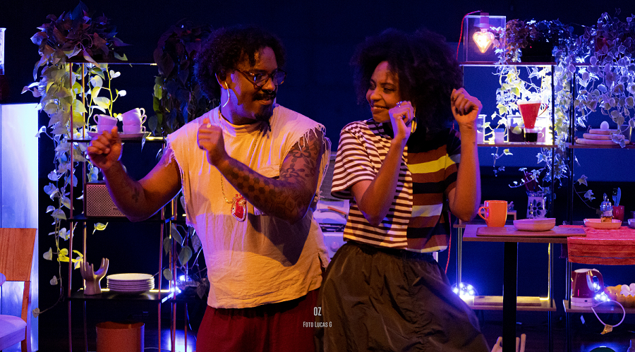 Idealizado por Aline Mohamad, “OZ”,da companhia Aquilombamento Ficha Preta (SP), é um espetáculo bilíngue em português e Libras que propõe repensar os padrões sociais do amor. Em cena, o casal é formado pelo ator, poeta e slammer surdo Edinho Santos e pela atriz Letícia Calvosa. Juntos, eles compartilham seus afetos na cozinha — espaço de escuta, cuidado e resistência — enquanto questionam os limites impostos aos seus corpos e constroem formas próprias de amar e existir em família.