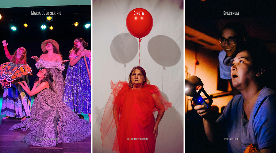 A montagem “Maria quer ser rio”, da Coletiva de Palhaças (AM), narra a história de Mariazinha, uma menina com baixa visão que vive em uma casa flutuante e descobre o mundo encantado da ancestralidade amazônica. O grupo atua nas interseções entre palhaçaria, feminismo, ancestralidade e acessibilidade. Criam experiências cênicas e formativas voltadas a públicos diversos, com atenção especial a mulheres negras, indígenas, LGBTQIA+ e pessoas com deficiência. Sua pesquisa amplia os horizontes da comicidade no Norte do país, incorporando perspectivas como a “cosmocegueira” e práticas anticapacitistas no fazer teatral.