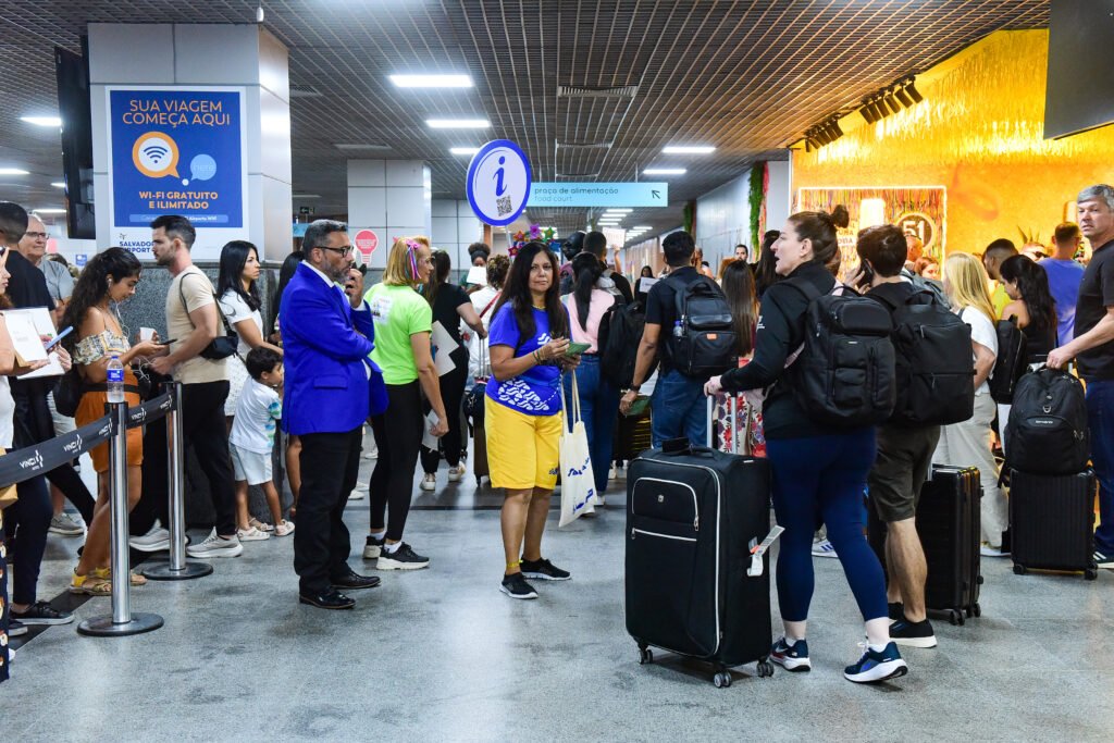 O maior carnaval do mundo também atrai turistas que vivem fora do país. Daniele Turcheniquis, também fluminense e atualmente moradora de Miami, veio para o Carnaval acompanhada de dois amigos que residem em Dubai, nos Emirados Árabes Unidos. Estreante na folia soteropolitana, ela elogiou o clima no aeroporto e se mostrou muito feliz. “Eu já estava querendo sair [do saguão de desembarque] enquanto esperava a mala, porque estava vendo o clima. Eu senti a energia lá de dentro. Estou muito nervosa e ansiosa, mas também muito feliz de estar no Carnaval de Salvador”, afirmou.