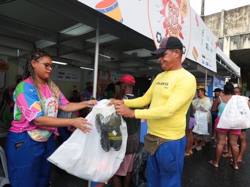 O projeto Ecofolia Solidária, desenvolvido pela Secretaria do Trabalho, Emprego, Renda e Esporte (Setre), em parceria com outros órgãos estaduais, visa garantir condições dignas de trabalho para catadores e catadoras durante o Carnaval. São 3.300 catadores cooperados e autônomos beneficiados este ano com equipamentos de proteção individual, composto por fardamentos, botas, luvas, protetor auricular e uma estrutura de apoio para comercialização do material recolhido.