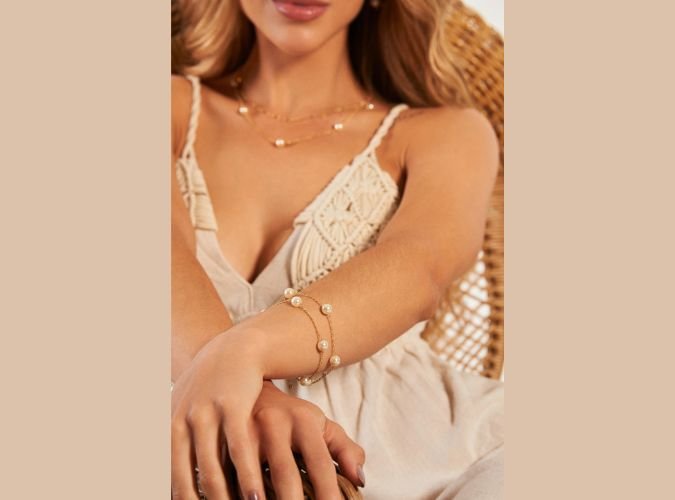 - Cores neutras: dourado e prata são os tons mais usados — às vezes com toques sutis de madrepérola, zircônia ou pedras translúcidas.