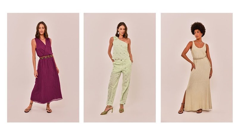 Coleção celebra o mood tropical com shapes fluidos, bordados artesanais e cartela que une tons naturais e vibrantes em composições versáteis