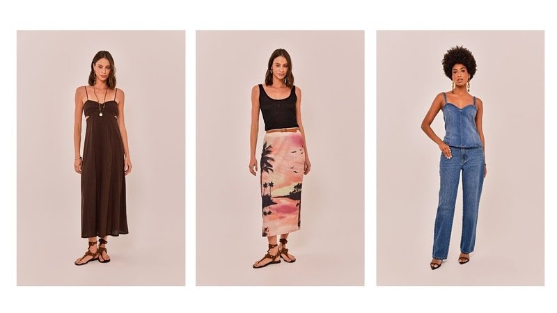 As estampas, ora orgânicas e artesanais, ora botânicas e pictóricas, evocam o pôr do sol tropical, a flora exuberante e a fauna em movimento, enquanto padronagens étnicas, florais e listras ganham leituras contemporâneas que remetem ao charme rústico e romântico do handmade.