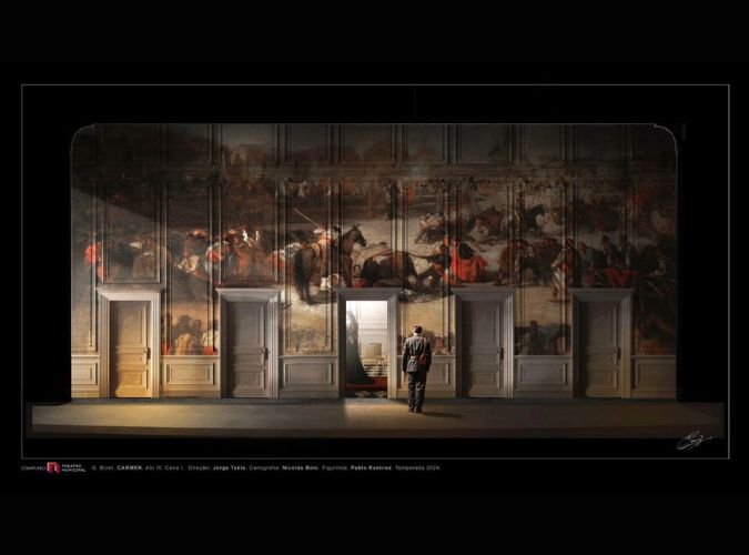 “O aspecto trágico e sombrio da novela de Mérimée foi atenuado no libreto da ópera de Bizet, mas a partitura traz à tona todos os recantos mais densos camuflados nessa obra. A Carmen original se passa numa fábrica de tabaco. A mudança para um ateliê de alta costura da Espanha Franquista dos anos 1940 e 1950 nos projeta em um clima que remete à leveza de uma verdadeira ópera-comique francesa, quase parisiense, precursora das operetas. Em um dos principais cenários vamos ter um painel imenso, de seis portas, com pinturas da escola de Francisco de Goya. Em outro, um imenso ateliê, que será um formigueiro de costureiras e bordadeiras“, explica o diretor Jorge Takla. “É tragédia e divertimento, champagne e sangue”, conclui.