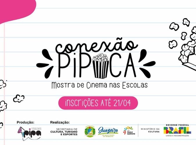 Estão abertas as inscrições para o Conexão Pipoca, projeto que vai realizar mostras de cinema para crianças de escolas públicas em Juazeiro. Cineastas de Juazeiro e região ou de outras cidades baianas podem enviar propostas até o dia 21 de abril, por meio de formulário online disponível no link (https://linktr.ee/conexaopipoca).