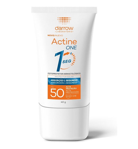 O Darrow Actine One é a mais recente inovação de Darrow Laboratório em proteção solar, destacando-se por ser o único no mercado com absorção em 1 segundo. Desenvolvido em parceria com dermatologistas para a pele brasileira, oferece uma proteção eficaz com FPS 50 e se adapta a todos os tons de pele, sem deixar resíduos brancos. Além de sua praticidade, Actine One tem alto poder de proteção contra a radiação UVA, que é a principal responsável pelo fotoenvelhecimento e hiperpigmentação da pele, tornando-se a escolha ideal para quem busca um protetor solar prático e discreto, capaz de acompanhar as necessidades diárias com eficiência.