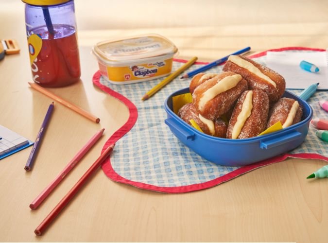 - Fatie cada bisnaguinha ao meio e recheie com o creme de confeiteiro. Sirva a seguir.