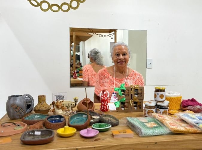 A feira reúne produtos autorais desenvolvidos por mulheres artesãs, que apresentam ao público peças exclusivas confeccionadas com diferentes técnicas manuais. Entre os destaques estão artigos de decoração natalina e sugestões de presentes diferenciados, voltados para quem busca originalidade.