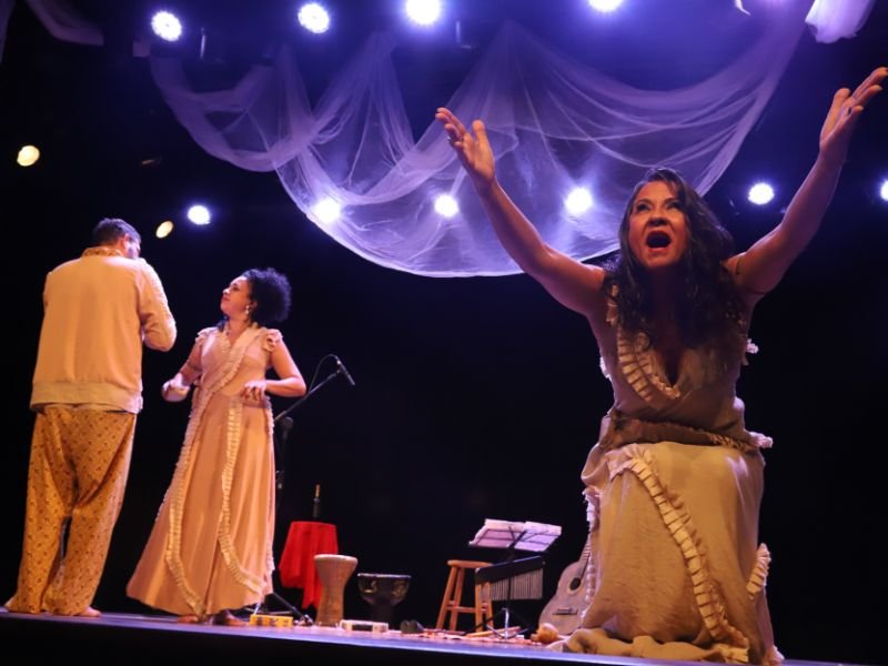 Sonora Poesia & Outros Baratos é um mergulho na palavra viva, cantada, dançada, vestida de luz e som. Um encontro de música, cena e emoção que envolve o público e o faz sair do teatro levando a poesia no corpo e no olhar.